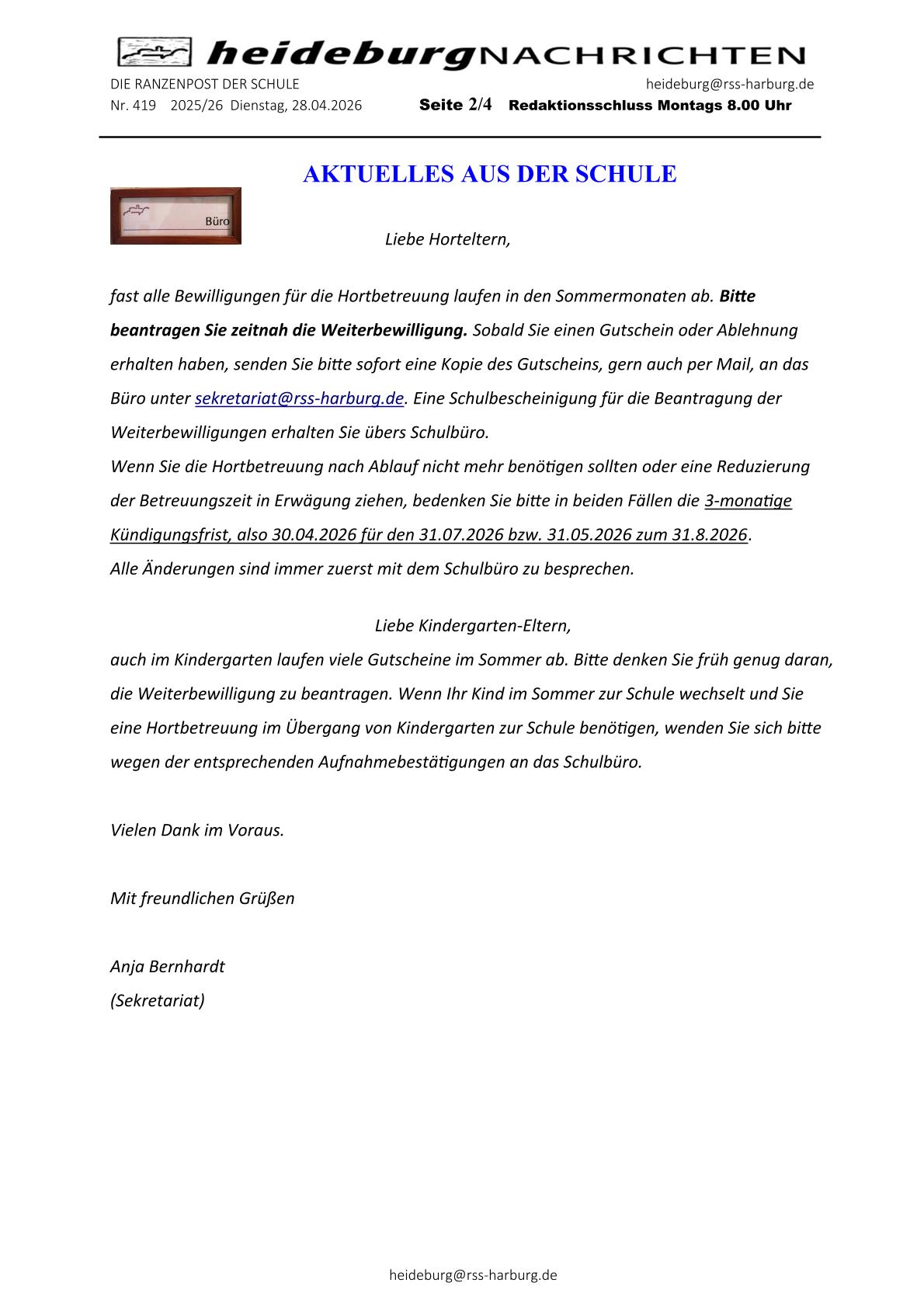 Sekretariat und Öffnungszeiten