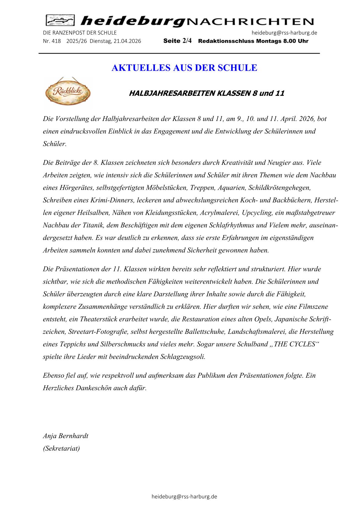 Aktuelles aus der Schule